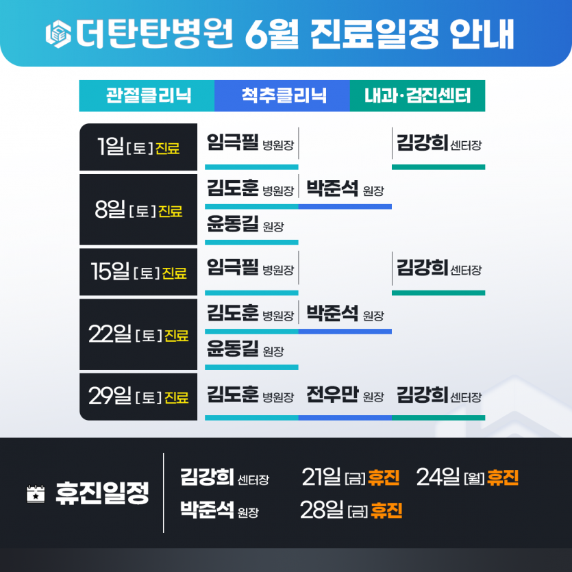 2024년 06월 의료진 진료 일정 안내 드립니다